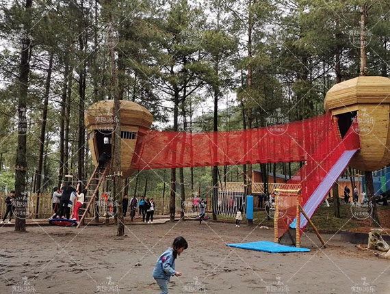 有趣樹屋項(xiàng)目通過攀爬梯子,你可以進(jìn)入樹屋,尤其是孩子們覺得有必要從上面往下看,感覺自己是空中較高的,可以逃過成人的直接接觸,使他們的自信心更加的堅(jiān)定。在配置些滑梯、秋千、繩網(wǎng)、滑竿等有趣的項(xiàng)目使的樹屋的樂趣倍增。