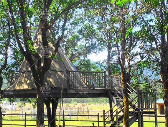 帳篷露營木屋項(xiàng)目特征:此款產(chǎn)品用于特色的帳篷露營場所,結(jié)合了木屋與帳篷的綜合特征。