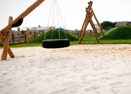 在類(lèi)似木質(zhì)游樂(lè)器材、滑梯、木質(zhì)海盜船等爬高并下降的設(shè)備中,必須進(jìn)行抗沖擊地面。