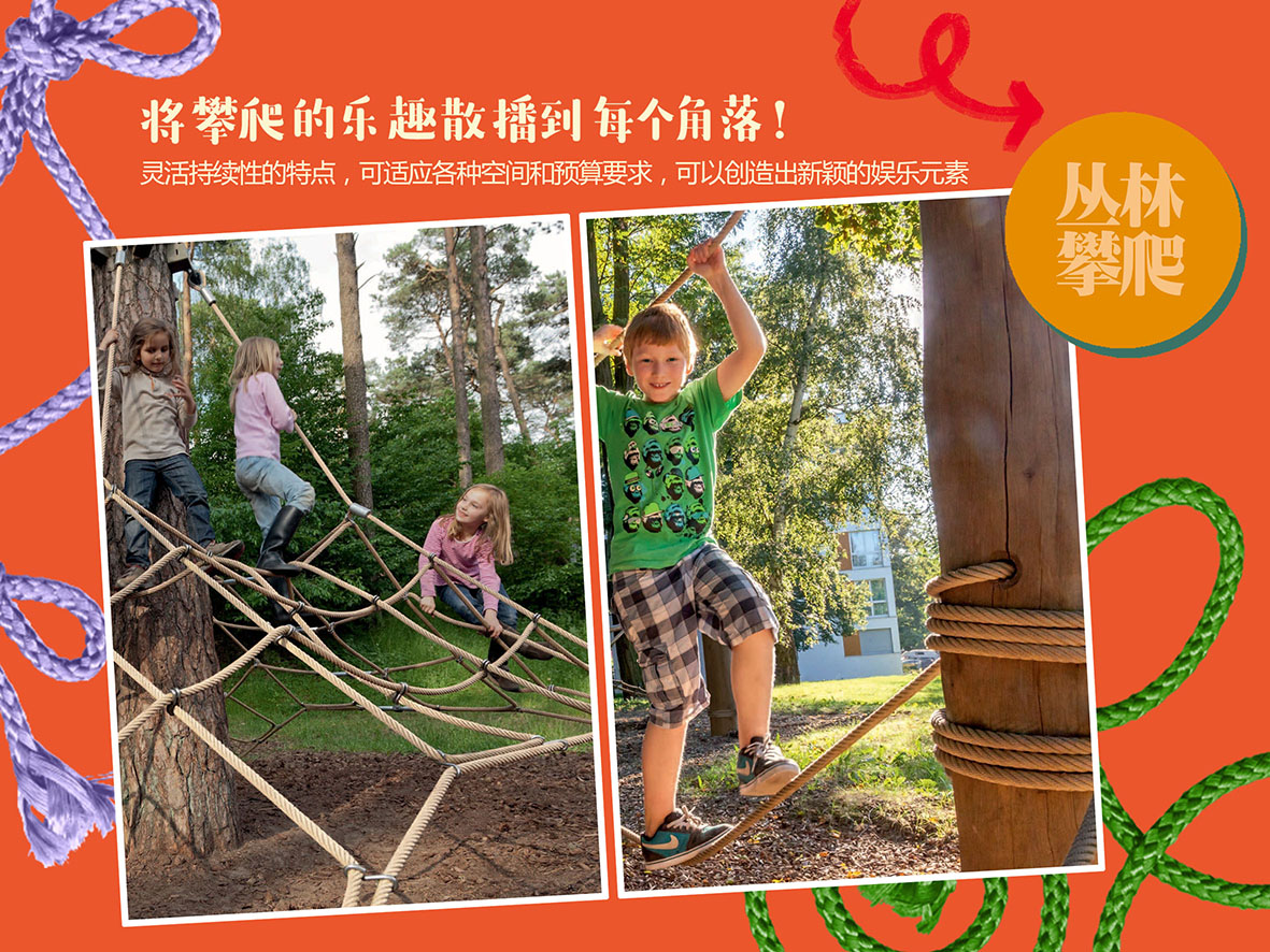 叢林攀爬項(xiàng)目以樹(shù)木自然生長(zhǎng)的形式存在,為所有年齡的兒童和年輕人提供各種各樣玩耍、叢林攀爬的機(jī)會(huì)。 叢林攀爬項(xiàng)目可靈活的設(shè)置,使樹(shù)現(xiàn)有的生長(zhǎng)或根系不被破壞。 在樹(shù)冠的光影中爬來(lái)爬去,給人一種特別被照顧的感覺(jué),當(dāng)樹(shù)梢在風(fēng)中沙沙作響,或小雨讓樹(shù)葉唱歌,這構(gòu)成了在叢林攀爬中玩耍成為一種整體的體驗(yàn)。