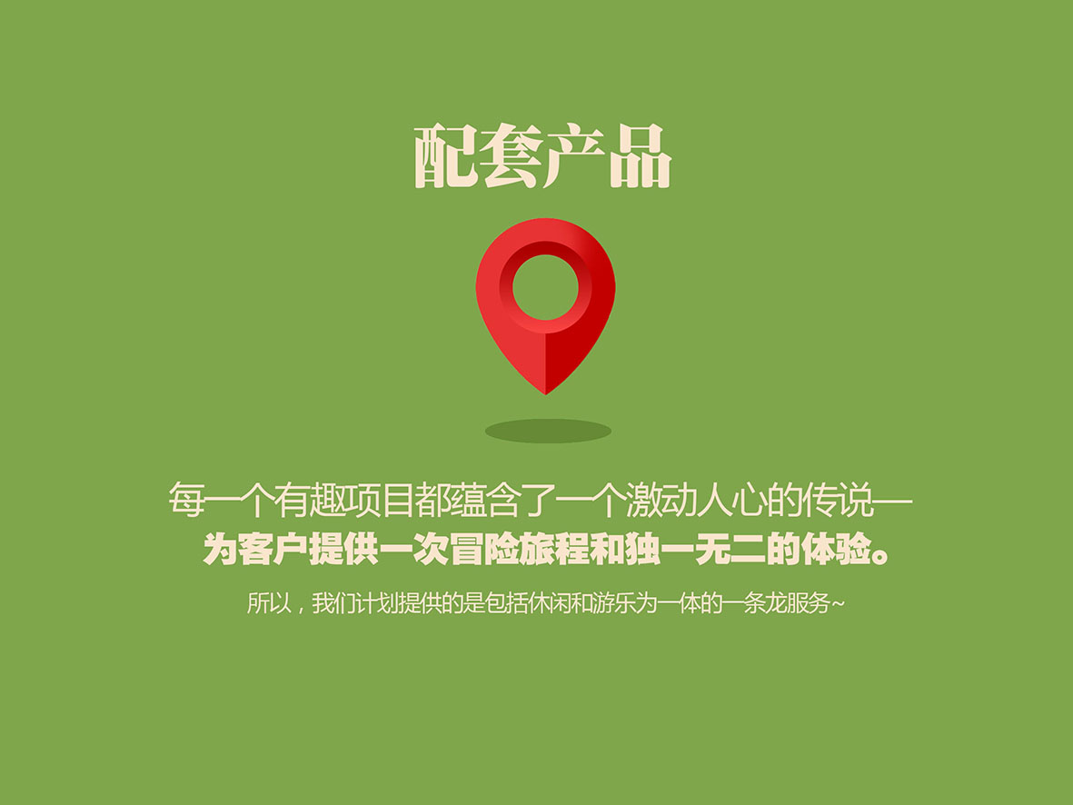 每個(gè)有趣項(xiàng)目都蘊(yùn)含了一個(gè)激動(dòng)人心的傳說(shuō),為客戶提供一次冒險(xiǎn)旅程和 體驗(yàn)非常好的體驗(yàn),所以,計(jì)劃提供的是包括休閑娛樂(lè)為一體的一條龍服務(wù)。