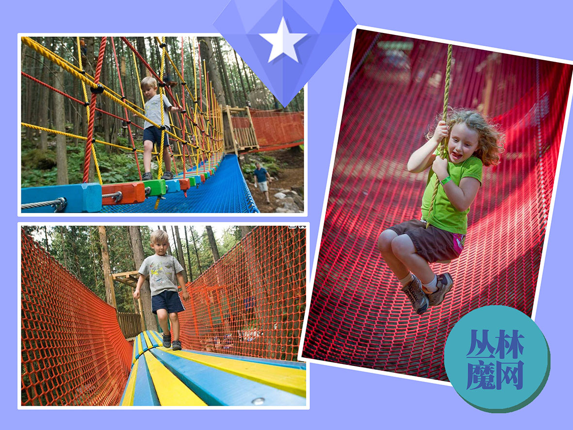 叢林魔網(wǎng)(叢林繩網(wǎng))可以成為所有年齡段人群夢(mèng)幻般樂(lè)趣的來(lái)源,可以全家一同享受的無(wú)動(dòng)力游樂(lè)項(xiàng)目。叢林繩網(wǎng)被設(shè)計(jì)為可供大多數(shù)人使用,但需要適當(dāng)程度的體力支出和精神挑戰(zhàn)。